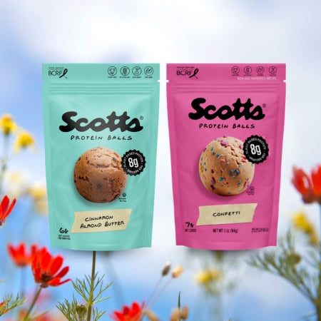 Scott's Protein Balls are plant-based, gluten-free, dairy-free, soy free, non-gmo and made with all-natural or organic ingredients like oats, oat flour, flaxseed, chia seeds, and protein powder. We use nut butters in 3 of our protein balls as well as having 3 nut free options